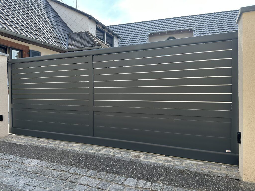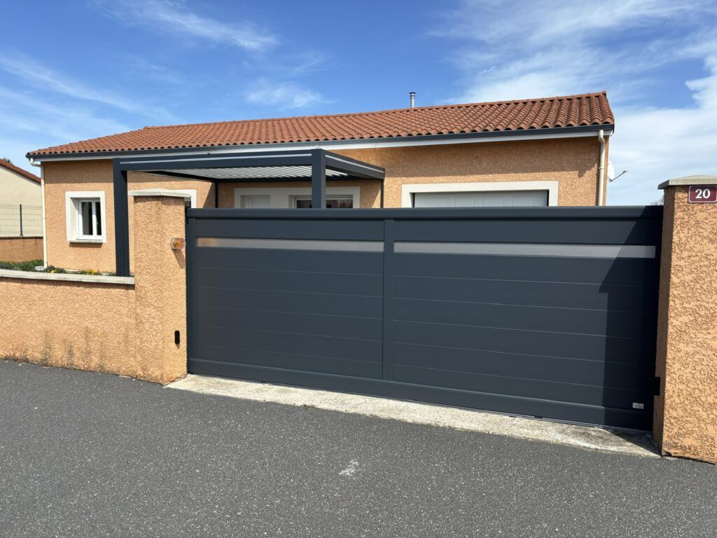 Un portail aluminium battant (2 vantaux) posé en asymétrique ou non, avec une gestion de pente ? Nous avons la solution en portail électrique.